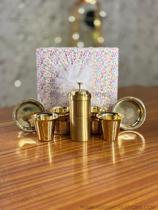 Brass Coffee Filter & 4pcs Brass Kolam Dabara Set Return Gift | Traditional Brass Coffee Set | Wedding & Housewarming Favor Under ₹3500