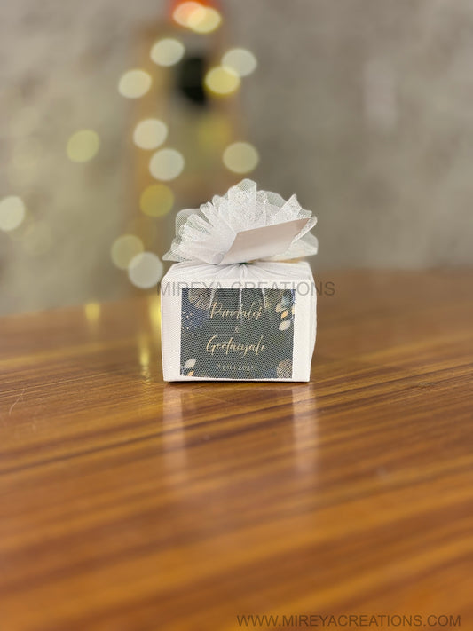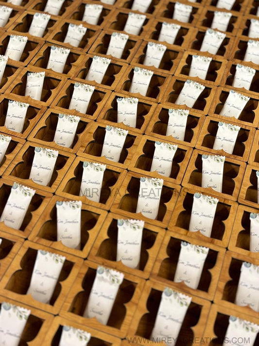 Handcrafted Wooden Box Return Gift with Customized Chocolate - Premium Wedding Favor