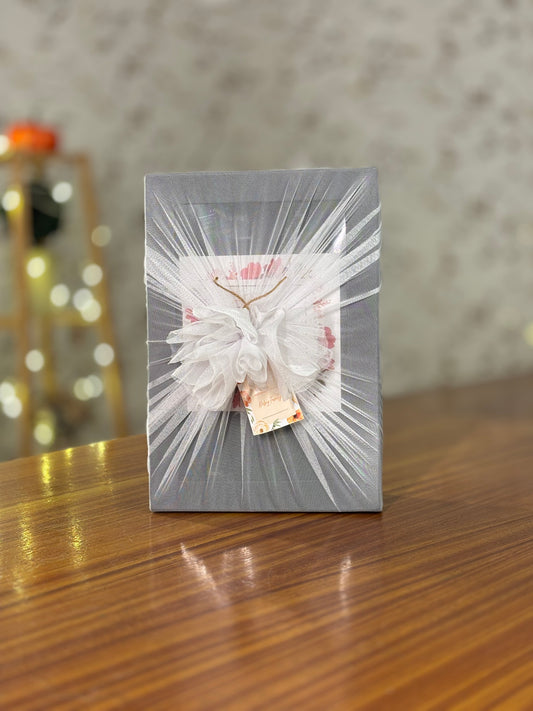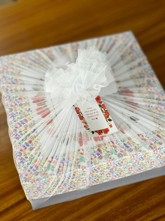 Deluxe Palm Box Gift Set Return Gift | Steel Bottle, Macaroons, Brass Glass & Nut Containers | Wedding & Festive Favor Under ₹1700