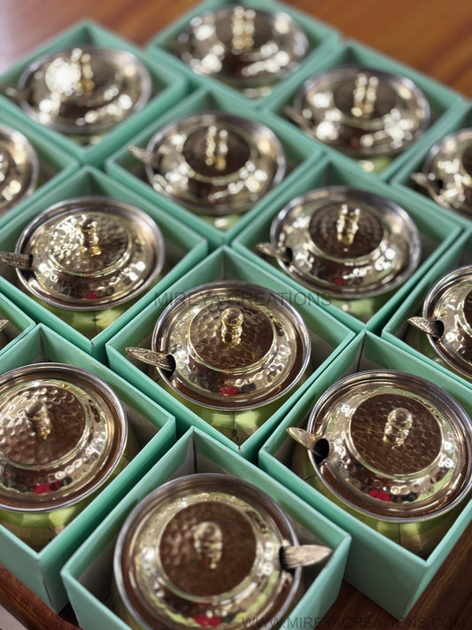 Hammered Brass Ghee Pot Return Gift | Traditional Brass Ghee Pot in Pastel Gift Box | Wedding & Housewarming Favor Under ₹1300