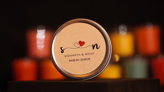 Customised Tin Candle Combo | Potpourri Jar & Chocolate Bar Gift Set | Wedding & Housewarming Return Gift Under ₹500