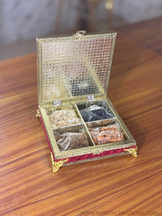 Premium Red & Gold Dry Fruit Box Return Gift | Royal Assorted Dry Fruits Hamper | Wedding & Festive Favor Under ₹1000