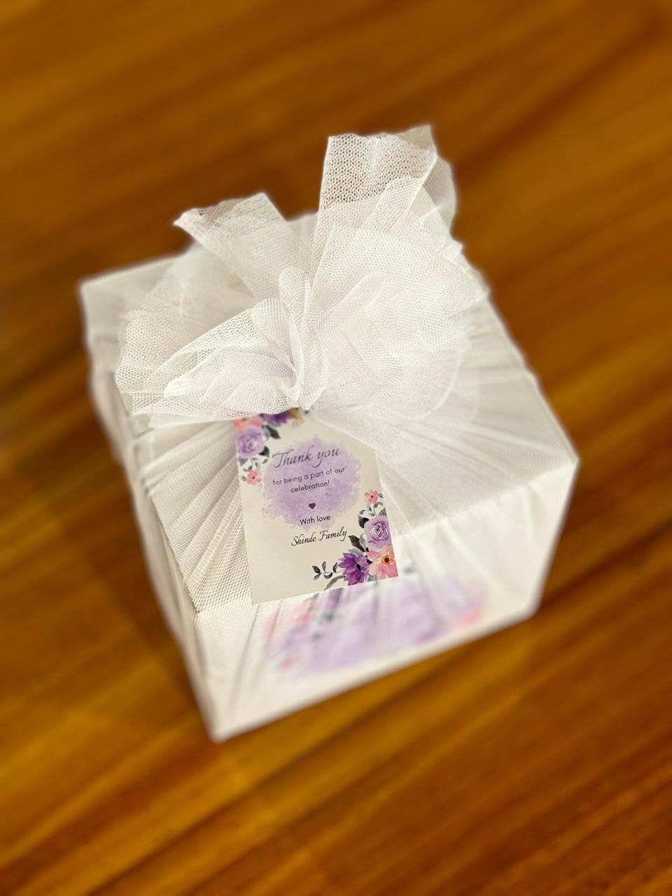 Make your celebrations unforgettable with this Premium Return Gift Hamper from Mireya Creations, thoughtfully curated to offer elegance, fragrance, sweetness, and style in one beautiful package. This luxurious hamper includes a stylish hammered metal box, a dry fruit jar, a chocolate pouch, a scented candle, and a potpourri pouch all neatly packed with a beautifully wrapped gift box.