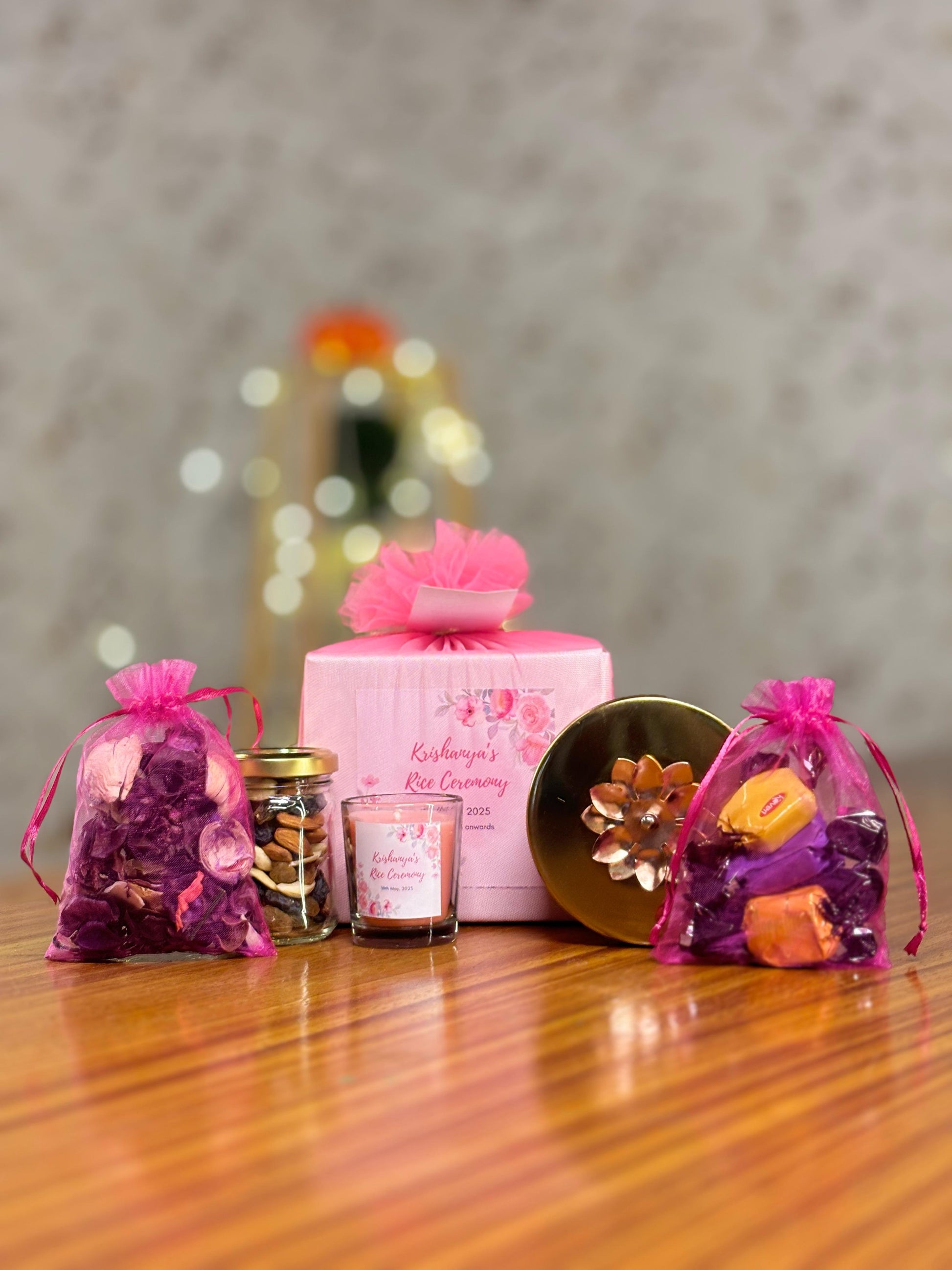 Make your celebrations unforgettable with this elegant Pink Theme Return Gift Hamper from Mireya Creations. Thoughtfully designed for traditional ceremonies and modern celebrations, this curated set adds beauty, fragrance and utility to every moment.