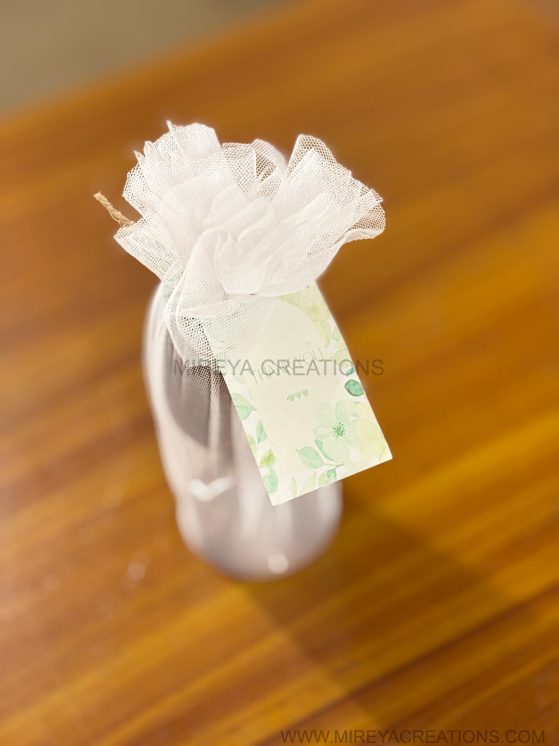Net gift packing with bow and personalised tag