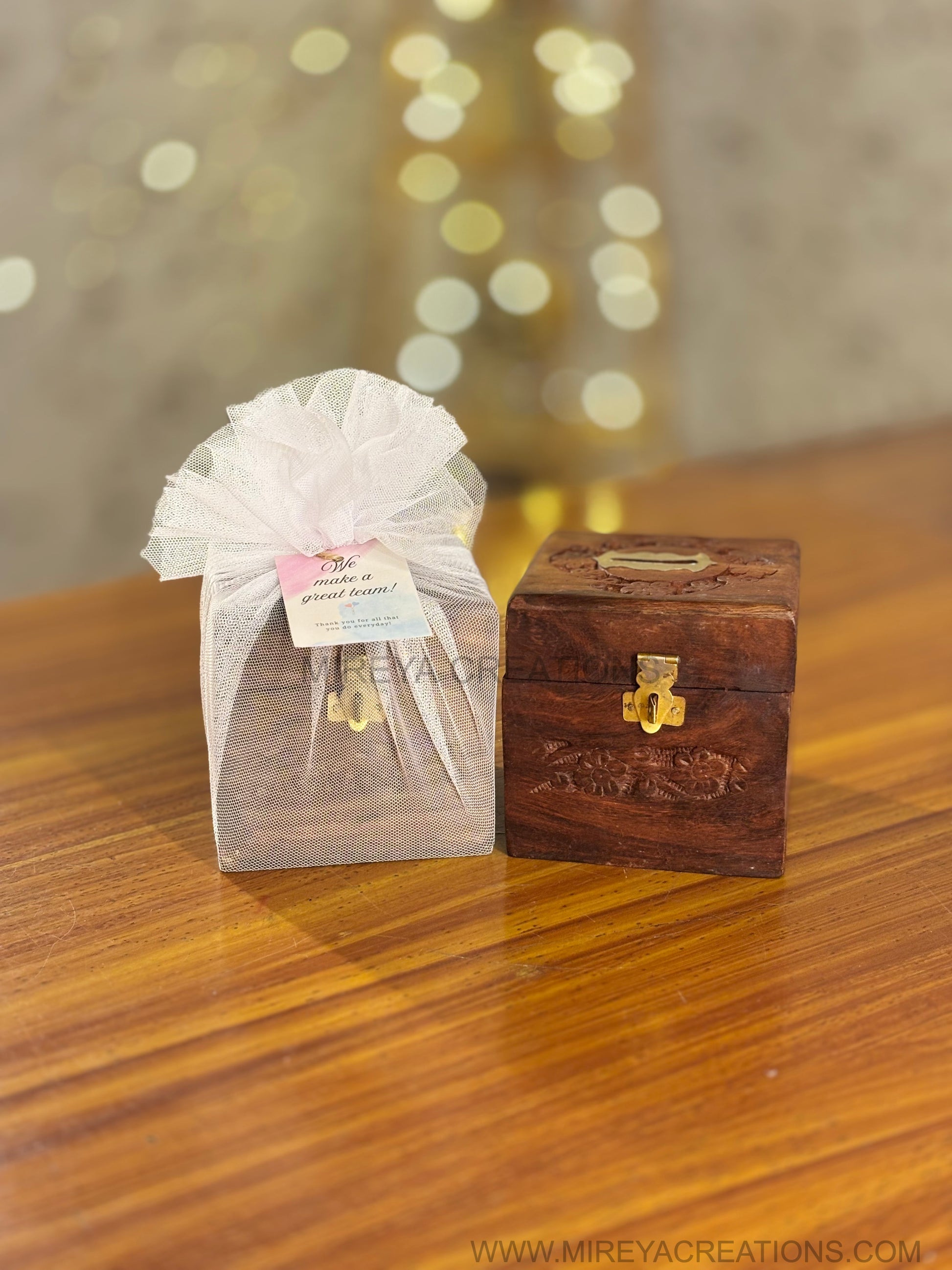Mini Wooden Piggy Bank | Coin Box Return Gift | Traditional Wooden Storage Box with Brass Inlay | Wedding & Birthday Favor Under ₹250