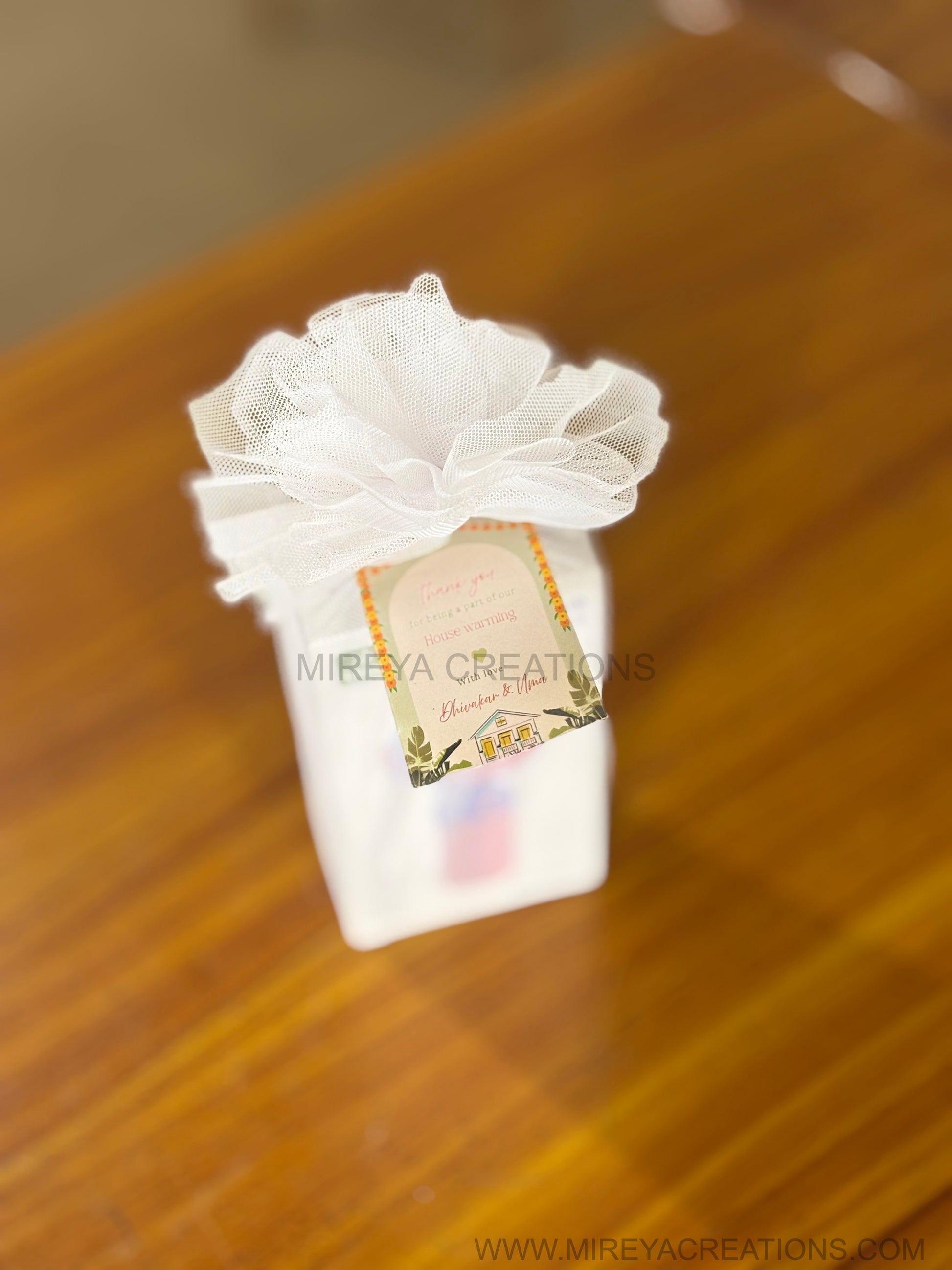 Optional net gift wrapping with bow and personalised tag