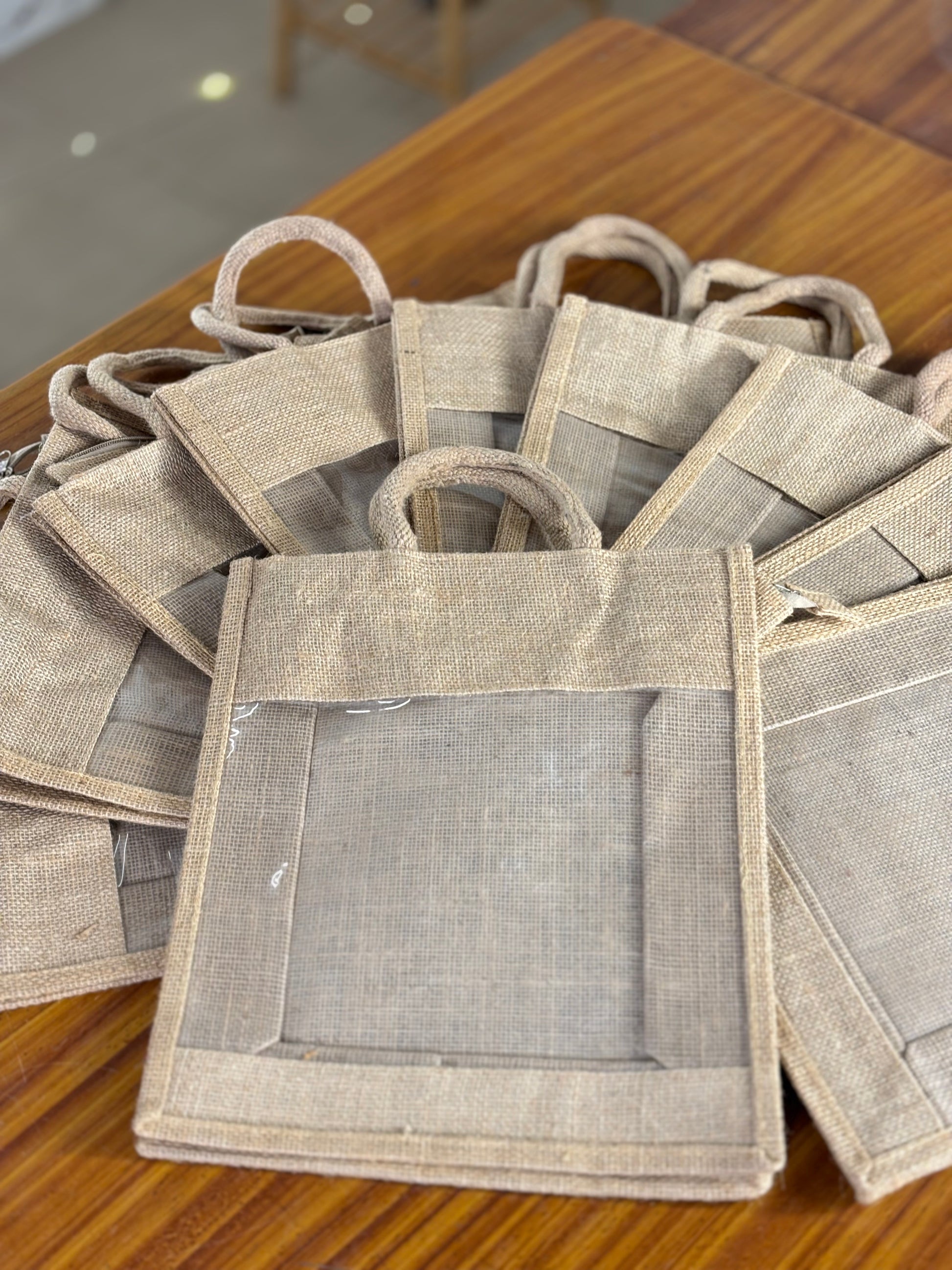 Plain Jute Bag with Transparent Window | Eco-Friendly Return Gift Bag | Wedding & Corporate Favor