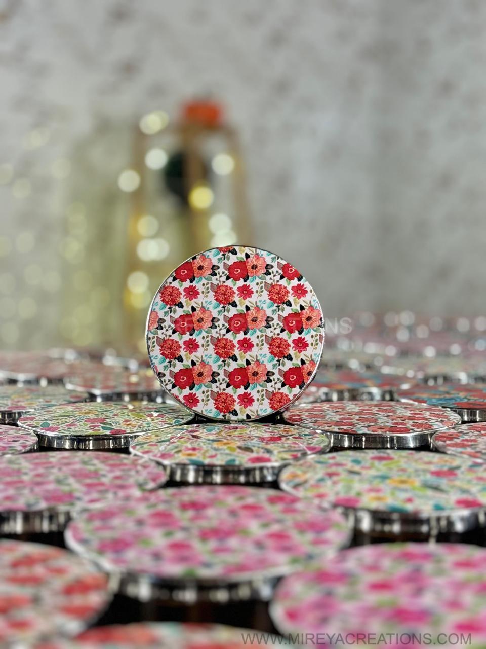 Each tin is crafted with high quality metal, coated with a glossy floral print that instantly enhances your gifting presentation. Ideal for bulk gifting and event giveaways.