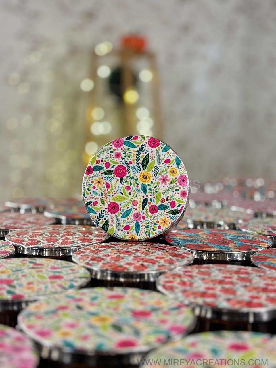 Add a touch of charm to your celebrations with our Premium Floral Printed Tin Box, beautifully designed with vibrant, eye catching flower patterns. These reusable tins are perfect for packing chocolates, dry fruits, candies, scented potpourri, small gifts, or custom hampers. Their premium look and sturdy finish make them one of the most loved choices for return gifts at events and functions.