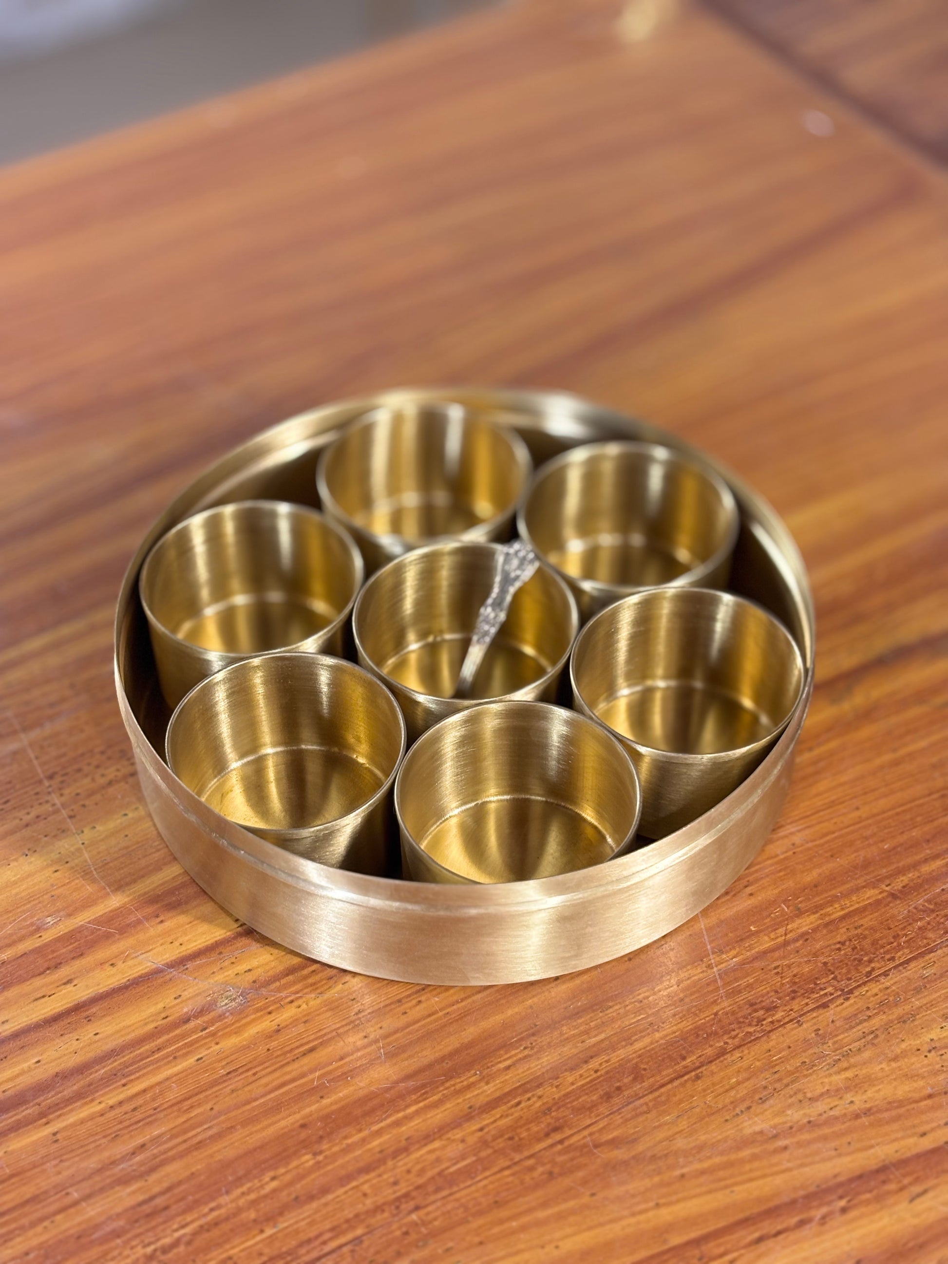 8 Inch Brass Spice Box Return Gift | Traditional Brass Masala Box | Wedding & Kitchen Favor Under ₹2500