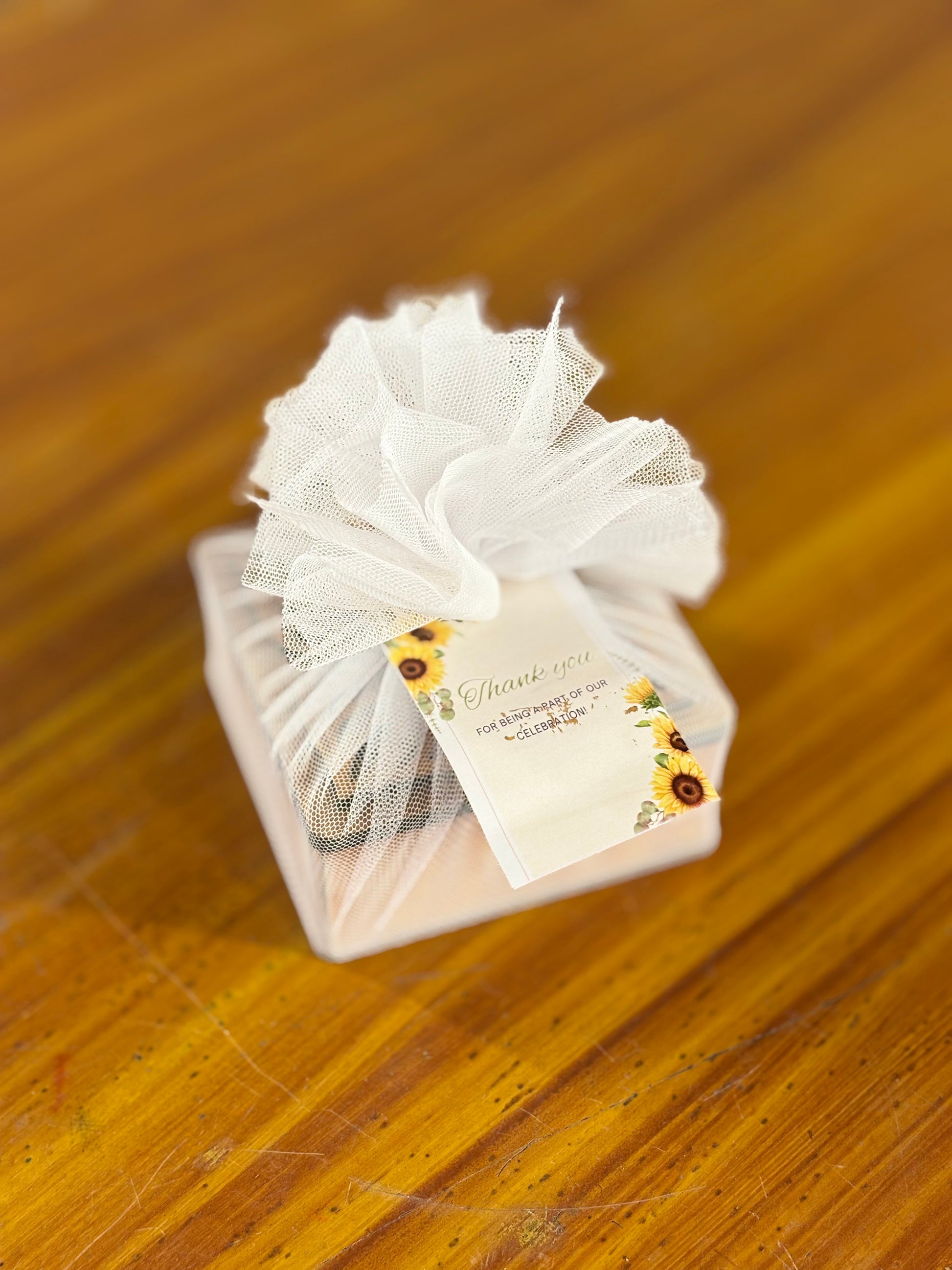 Make your special occasion unforgettable with Mireya Creations’ Floral Carved Wooden Box with Net Pouch a blend of traditional craftsmanship and modern elegance, perfect as a premium return gift for weddings, engagements, baby showers, and festive gatherings. Each gift features a hand carved wooden box with an intricate floral design, paired with a premium quality net wrapped pouch for an added touch of sophistication. Designed to delight your guests, our gift boxes reflect your appreciation and leave behind a lasting memory of your event. Ideal for those searching for unique, reusable, and budget friendly return gifts, this offering stands out for its artisanal charm and thoughtful presentation.