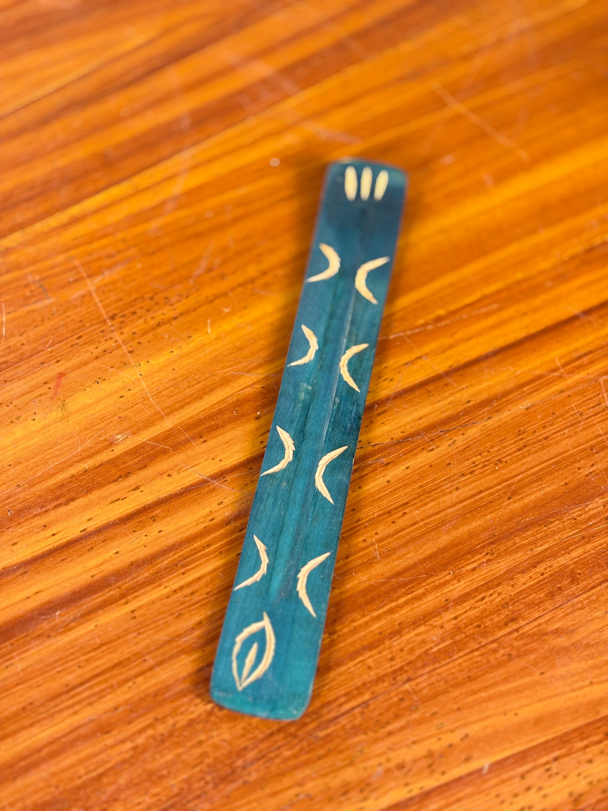 • One handcrafted wooden incense stick holder with hand painted ethnic design