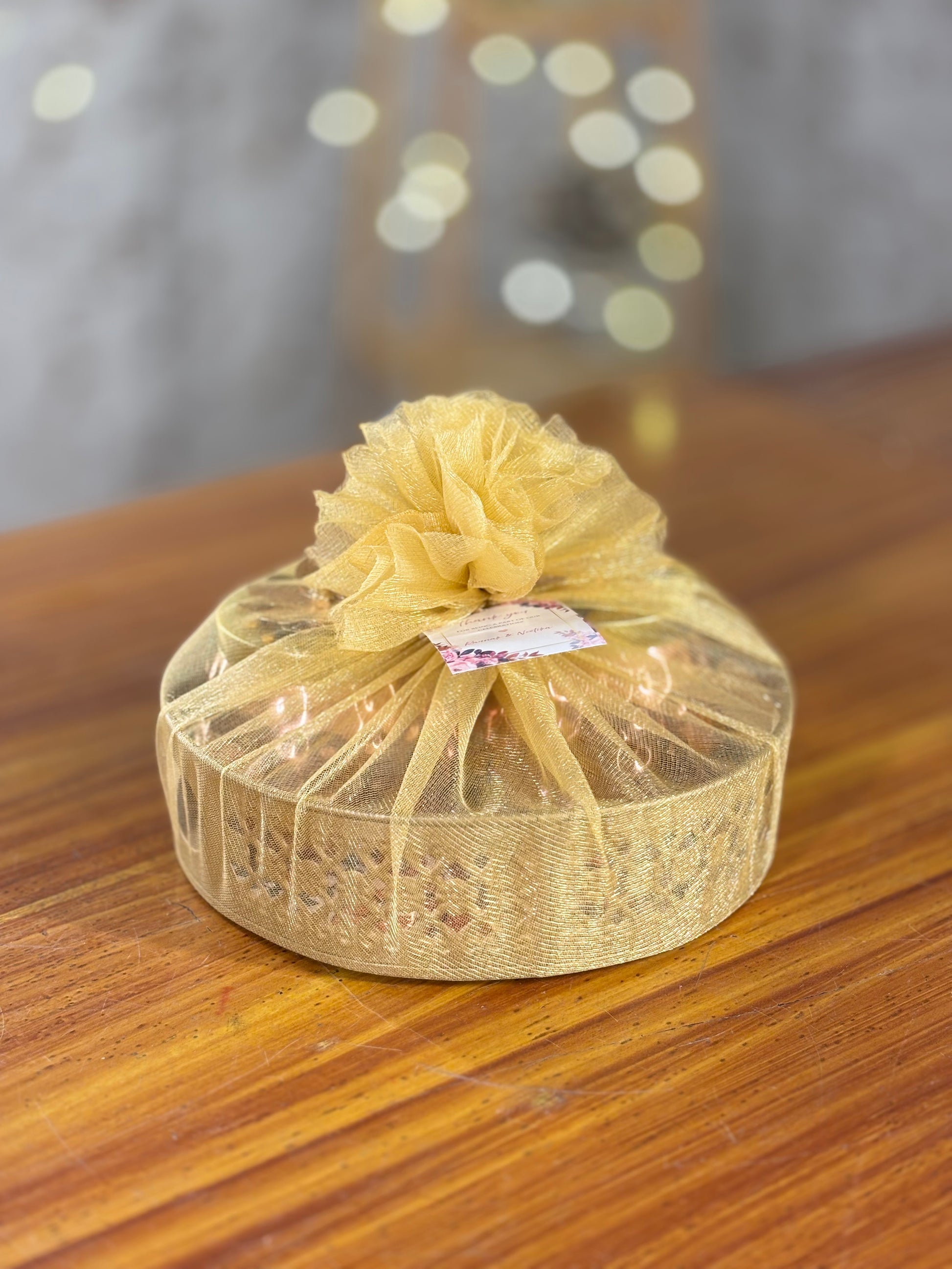 Impress your guests with Mireya Creations’ Hammered Copper Jar Hamper with Dry Fruits & Chocolates a truly luxurious return gift that blends traditional Indian artistry with modern presentation. This premium gifting hamper features two elegant hammered copper jars with designer lotus lids, presented in a decorative gold tray. Each jar is filled with an assortment of rich dry fruits and delicious chocolates, making it a perfect blend of health and indulgence. Designed for weddings, Diwali, anniversaries, or milestone events, this hamper is sure to elevate your celebration with sophistication and utility.